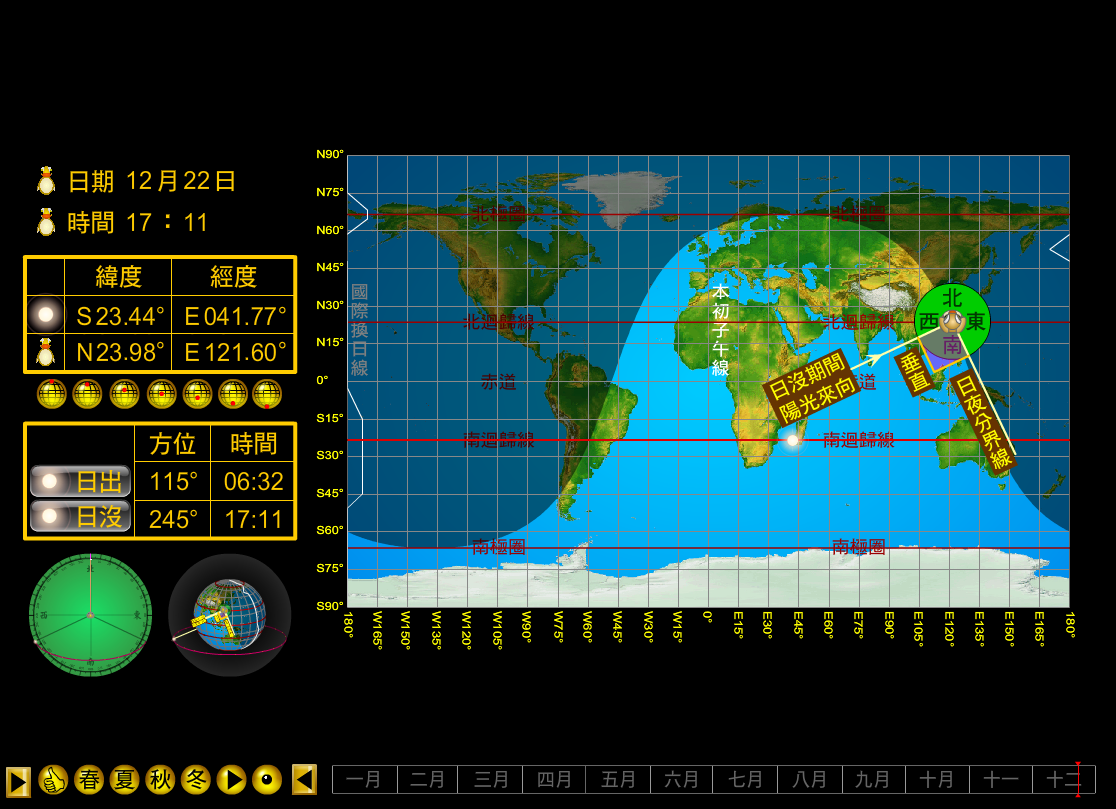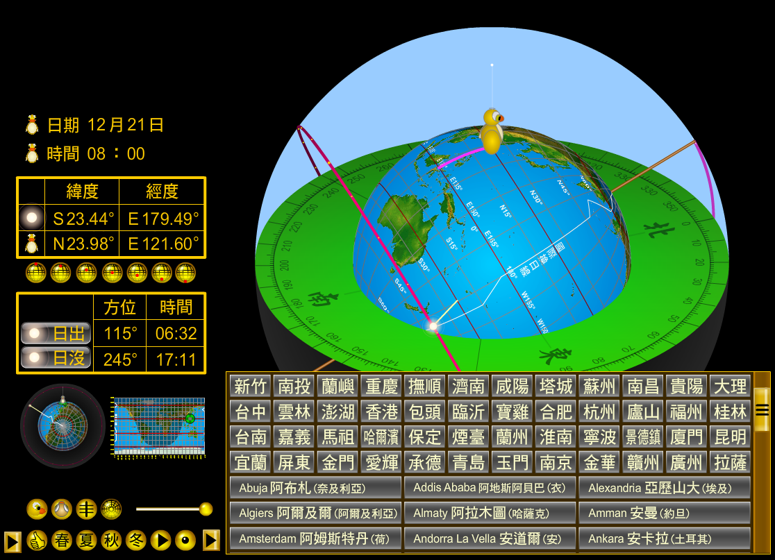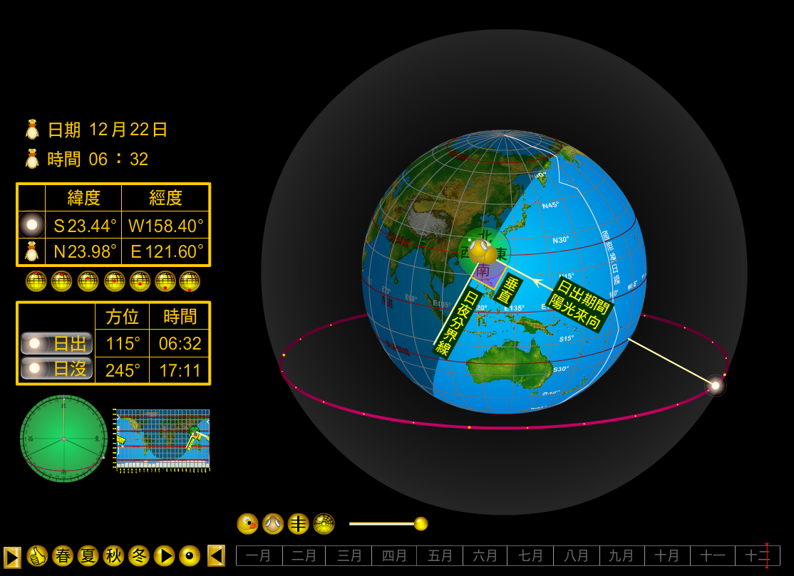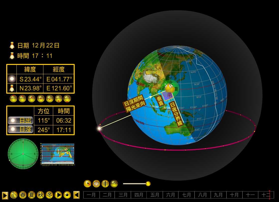 stereographic dynamic sunpath diagram Flash AS3 Azimuth Sunrise Sunset 各纬度四季太阳视运动轨迹 地球自转轴 立体互动Flash动画 太阳视运动轨迹 周日运动 Flash AS3 Azimuth Sunrise Sunset sun's daily motion of the sun simulator sun path 日出方位 日落方位 Azimuth Sunrise Sunset 3D